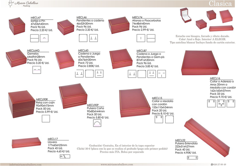 MECL47 | Estuche Sortija ó pendientes ó medalla y cadena 47x53xh40mm | € | 96 |